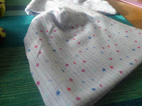 i strl Nyfödd. Tyget har en grund av ljusblått
